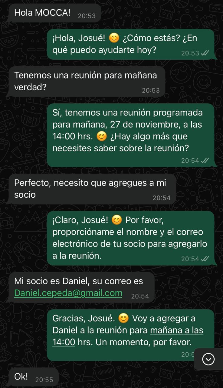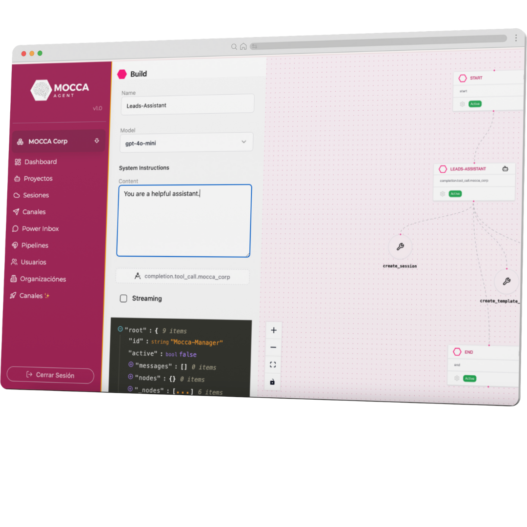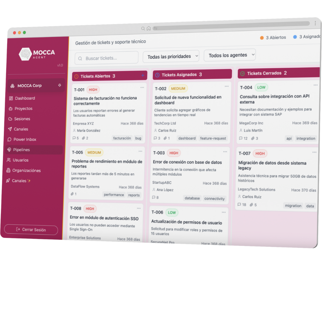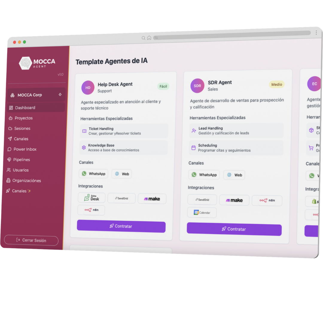 Con MOCCA Agent, puedes responder a tus clientes en minutos, resolver sus dudas y cerrar ventas de forma rápida y efectiva.