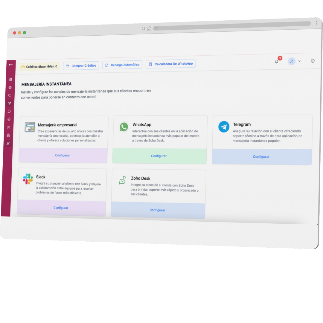 Conecta WhatsApp, Telegram, Slack, Web y más desde una sola plataforma. Diseña flujos con agentes de IA desde interfaz visual o API. Usa el canal que prefieras para ventas, soporte o automatizaciones internas.
